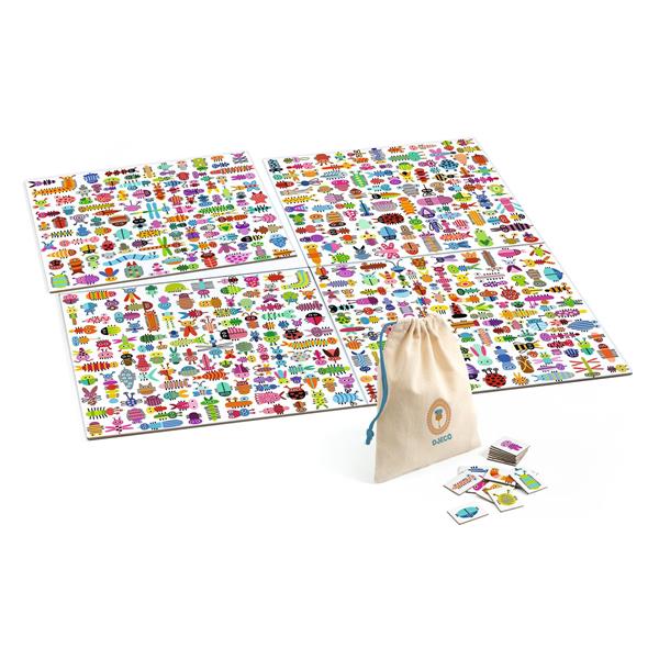 Discover the creative and playful world of the classic Seek & Find, reimagined by Djeco. Content : 4 interchangeable boards, 200 tokens and a cloth bag. Rules of the game are provided in 10 languages.