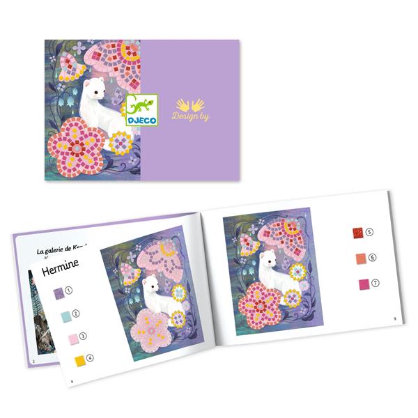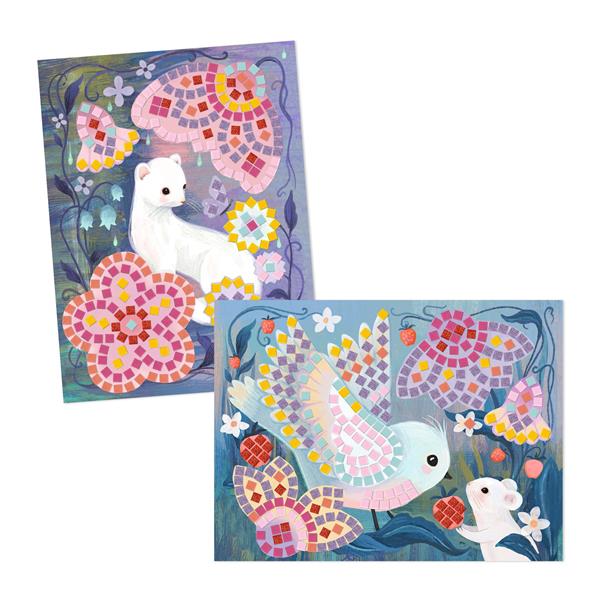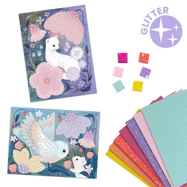 A collage activity to create mosaic pictures. To enhance these beautiful woodland scenes, children complete the compositions with the small squares of adhesive sparkly foam, following the instructions in the booklet step by step.