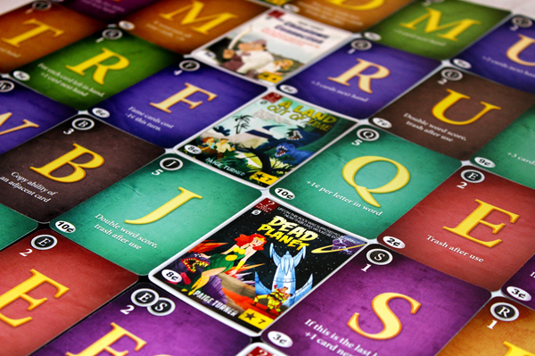 Paperback - le jeu de deckbuilding romancier. Vous incarnez un groupe d'écrivains en quête de célébrité. Le joueur le plus célèbre à la fin de la partie est déclaré vainqueur. Le jeu de construction de mots rencontre le jeu de construction de deck - les joueurs commencent avec un jeu de cartes de lettres et de jokers. À chaque main, les joueurs forment des mots et achètent des lettres plus puissantes en fonction du score de leur mot. La plupart des lettres ont des capacités qui s'activent lorsqu'elles sont utilisées dans un mot, comme piocher plus de cartes ou doubler le score de la lettre. Les joueurs achètent des jokers pour gagner des points de victoire. Paperback en est à sa 7ème édition dans sa version originale, avec plus de 40 000 exemplaires vendus à travers le monde ! Paperback en français est une traduction ainsi qu'une adaptation : le livret de règles ainsi que toutes les cartes ont été traduits (même les cartes de célébrité), et la répartition des lettres et des digrammes a été adaptée à la langue française.