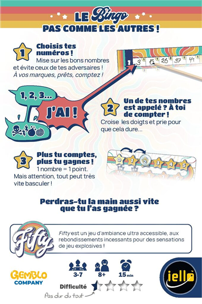 In Fifty, revisit bingo for epic games! Choose your numbers and start counting: from 1 to 50. The longer you count down, the more points you'll score.