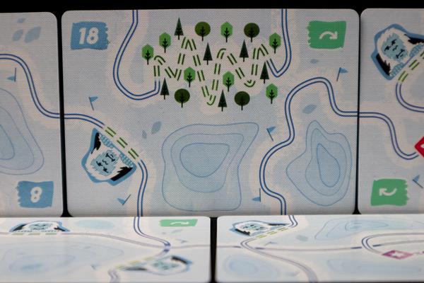 À votre tour, choisissez un itinéraire sur la rangée de cartes commune et réclamez la carte située à l'extrémité de cet itinéraire. Ajoutez cette carte à votre tableau personnel, créant ainsi un labyrinthe de pistes de ski entrelacées. À la fin du jeu, choisissez l'une des pistes de votre tableau et obtenez des points en fonction de ses caractéristiques. Les formes et les barres d'énergie vous rapportent des points, tandis que le Yéti et les arbres sont à éviter. Le joueur qui a le plus de points gagne !