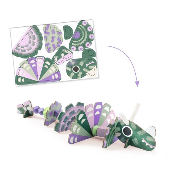 Une activité originale pour donner vie à 3 dinosaures à la fois gentils et terribles ! Sur le fil chenille, l’enfant enfile perles de bois et éléments prédécoupés en carton épais pour créer ses modèles. Une activité qui stimule la créativité, la motricité fine et l’imagination, avec des possibilités infinies de combiner les éléments et d'inventer ses propres dinosaures.