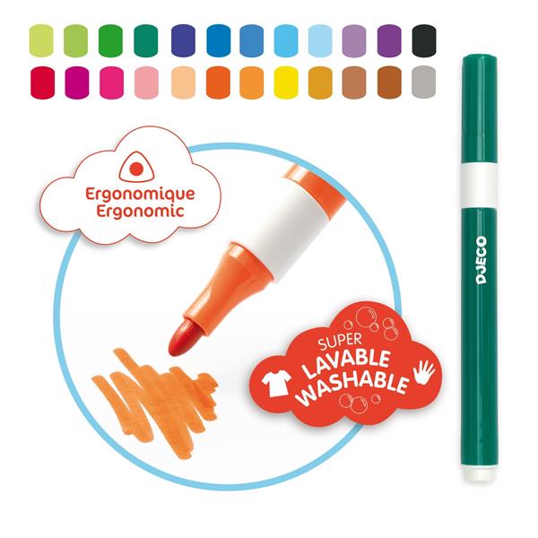 24 feutres ultra-lavables.
