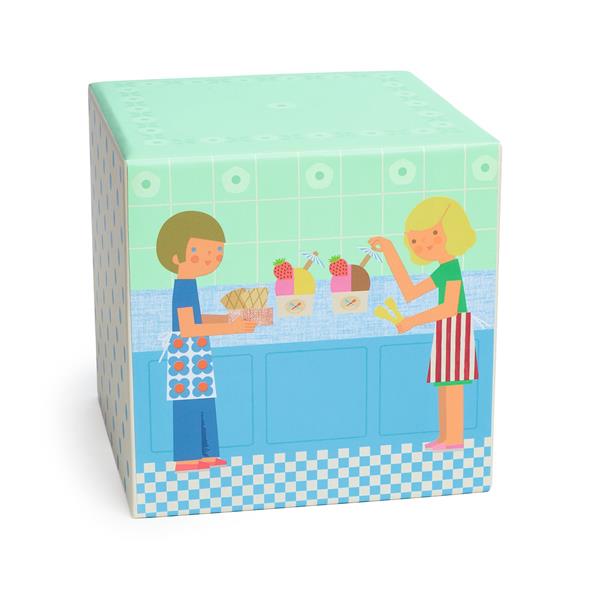 C’est l’heure du goûter ! Ce charmant coffret d'accessoires en bois et feutrine invite les enfants à préparer de savoureuses coupes de glace colorées. L’enfant pourra s’amuser à composer différentes glaces, à les décorer de petites ombrelles, de fruits et de biscuits selon ses envies, et à servir ses créations à ses invités. La boîte illustrée d’une scène d’enfants préparant joyeusement des glaces crée une atmosphère douce et familiale.