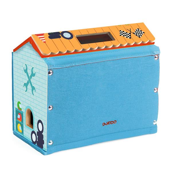 Un premier garage et circuit nomade en feutrine épaisse et bois, adapté aux enfants dès 18 mois. L’enfant ouvre le garage pour découvrir un grand circuit avec 3 voitures et 3 box. Chaque box est fermé par des bandes de feutrine : la voiture peut passer, mais elle reste cachée, ajoutant du suspense au jeu. Les enfants inventent librement des histoires de course et de stationnement. Une fois que le jeu est terminé, ils rangent facilement les voitures dans le garage et le transportent grâce à la poignée pratique. La feutrine épaisse assure une structure rigide mais légère.