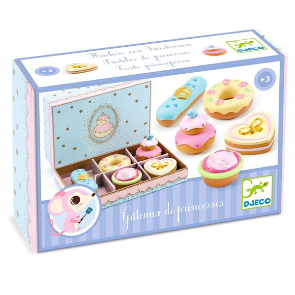 5 gâteaux en plastique agréable au toucher, vendu dans une belle boite décorée sur le thème des princesses.