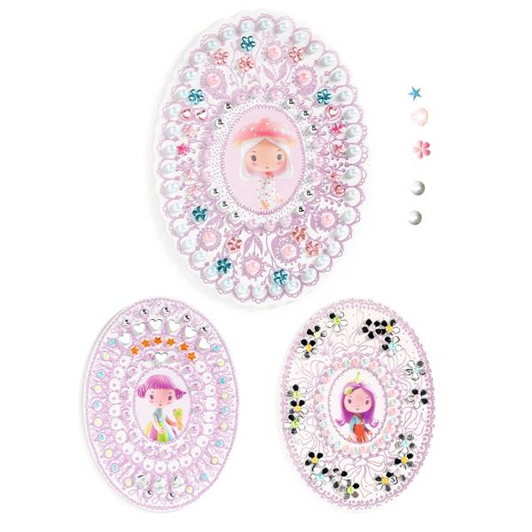 Trois médaillons en carton épais, imprimés avec un élégant estampage couleur parme, à décorer avec gemmes, perles et mosaïques pailletées, pour un effet métallisé. Inspirées par l’univers délicat des figurines Tinyly, ces activités créatives miniature signées Virginie Brachet invitent à un moment de finesse et d’évasion. Chaque médaillon, une fois décoré, devient un petit bijou raffiné, fidèle à l’esthétique précieuse de la collection Tinyly, et fait revivre Amy, Tutti et Lily dans un loisir créatif unique.