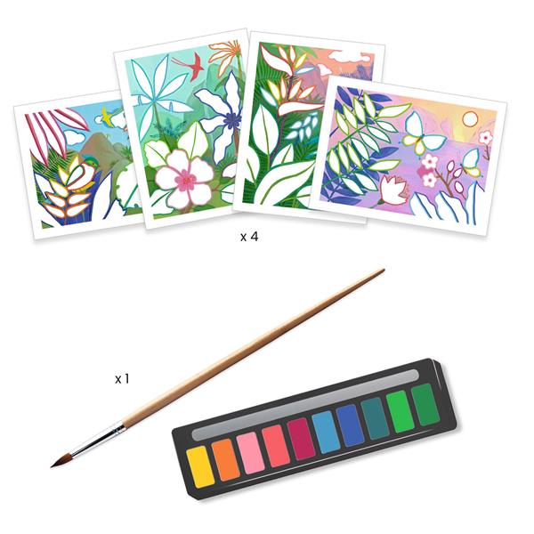 Un coffret parfait pour découvrir le plaisir de la peinture ! L’enfant s’amuse à colorer 4 tableaux aux zones bien définies, ce qui l’aide à se repérer facilement et à obtenir un joli résultat. Grâce à la palette de 10 couleurs, au pinceau et aux cadres inclus, chaque création se transforme en véritable petite œuvre d’art à exposer fièrement ! Contenu : 4 tableaux à peindre (21 cm x 28 cm), 4 cadres colorés, 1 véritable palette en plastique avec 10 godets de peinture, 1 pinceau.