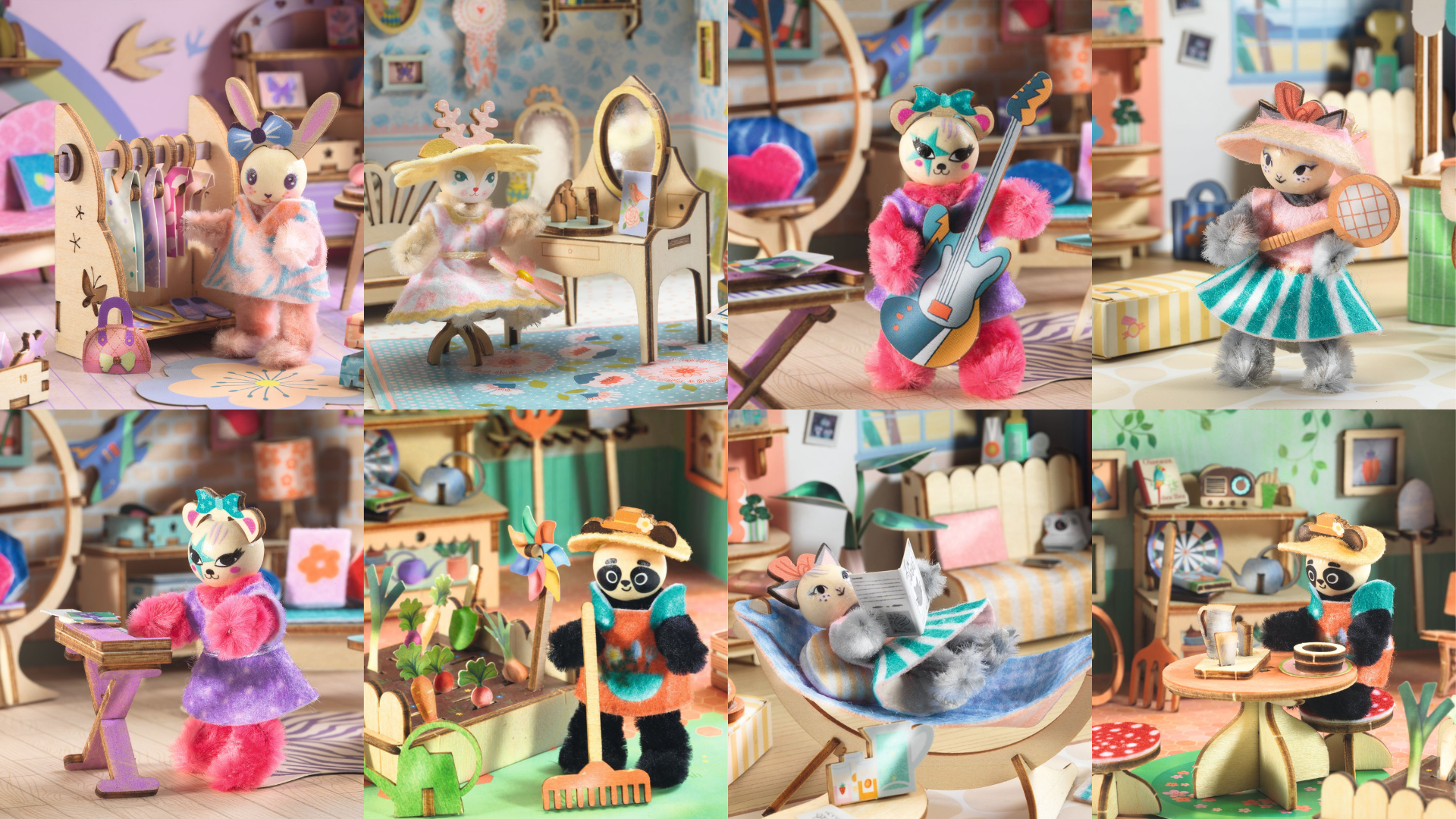 - Les Tinyly de Djeco : de petites figurines pleines de douceur et de poésie, avec leurs accessoires. Chaque Tinyly a son univers unique : une invitation au jeu narratif, mais aussi à l’envie d’avoir “toute la famille”.